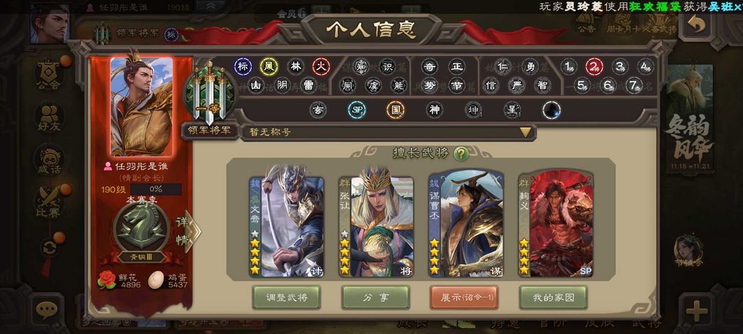 玉龙张奋★谋小乔★戏志才★甘夫人★界孙权★崔琰★彭羕★濮阳兴★界刘表★界张嶷