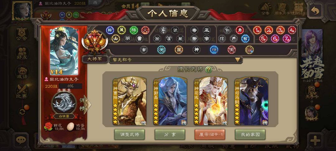v15一等大将军✨85史诗78动皮✨神郭嘉神司马懿曹髦刘焉司马昭神曹操势太史慈谋黄盖谋张角清河公主星