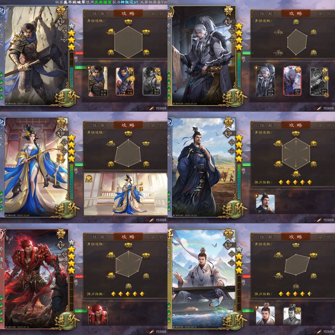 [有卡]至尊神郭嘉❤️三至尊⭐️曹髦十常侍刘焉☪️文鸯界沮授神甘宁神孙策斗地主大将军