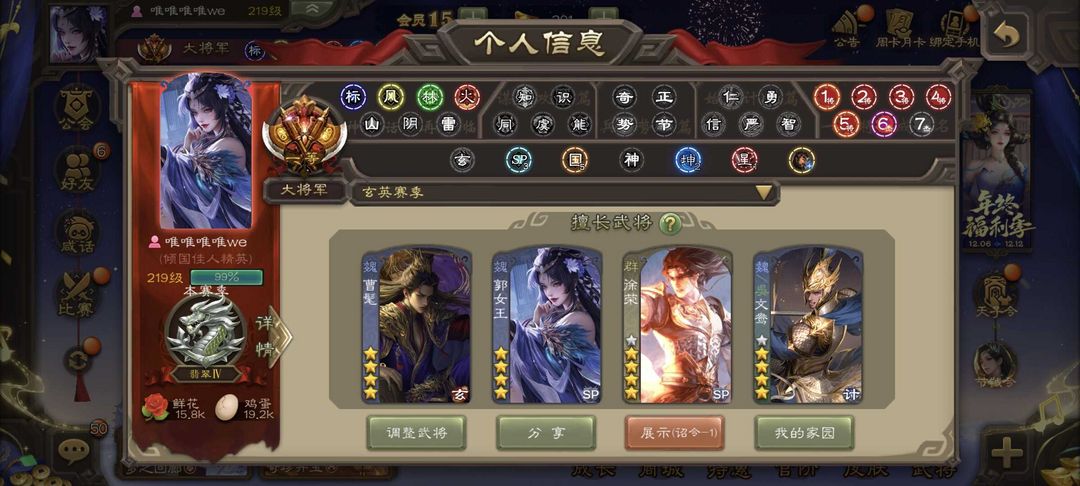 有卡(缺换将)/阙寒惊凤郭女王/枭龙破渊曹髦/势太史慈/张奋/sp甄姬/至尊文鸯/回廊神荀彧/动刘焉