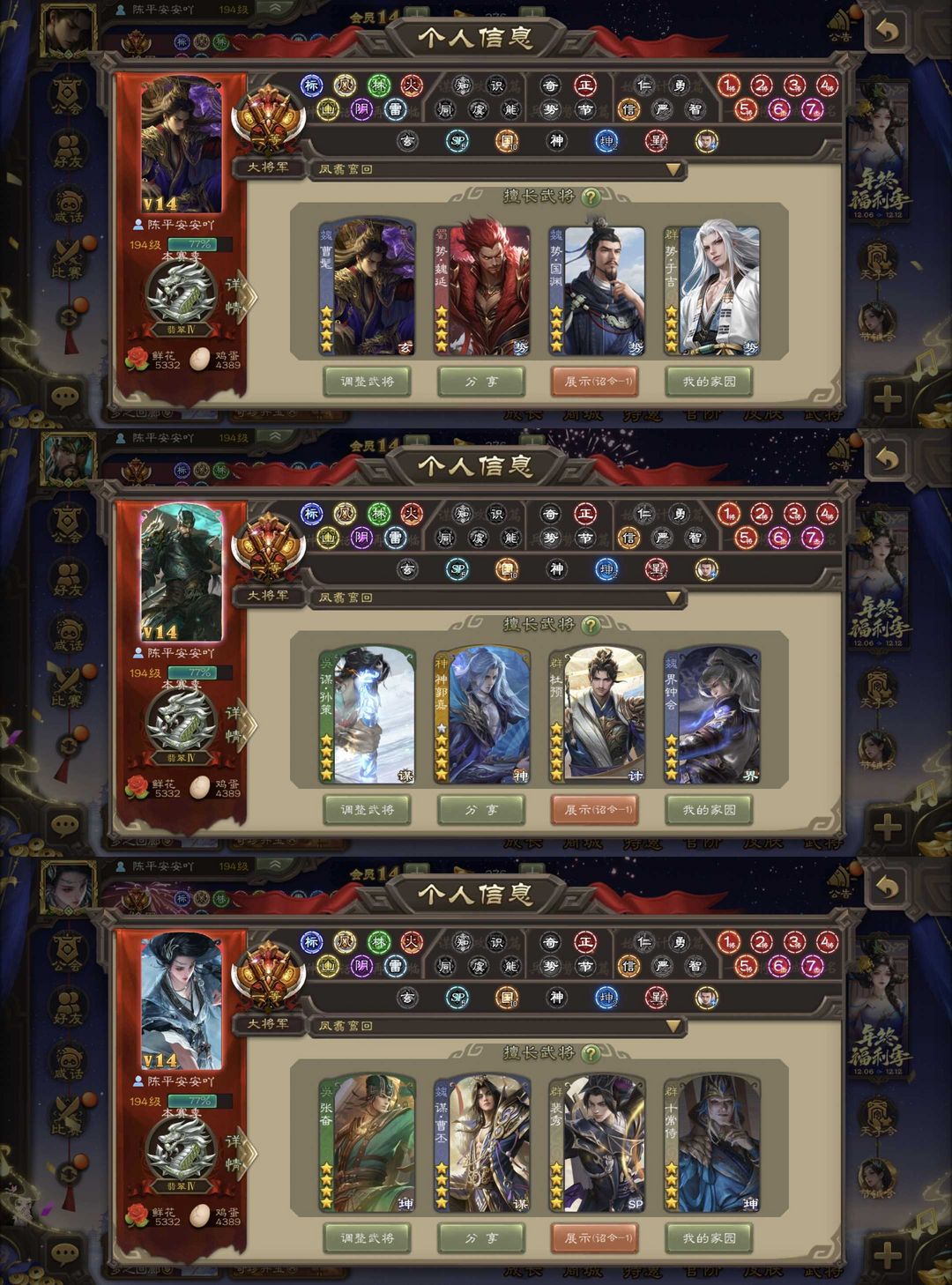 朝华同袍全回廊至臻动态十常侍友徐庶V12 58ss二等大将军108排位号回廊马良友徐庶动神司马懿曹髦