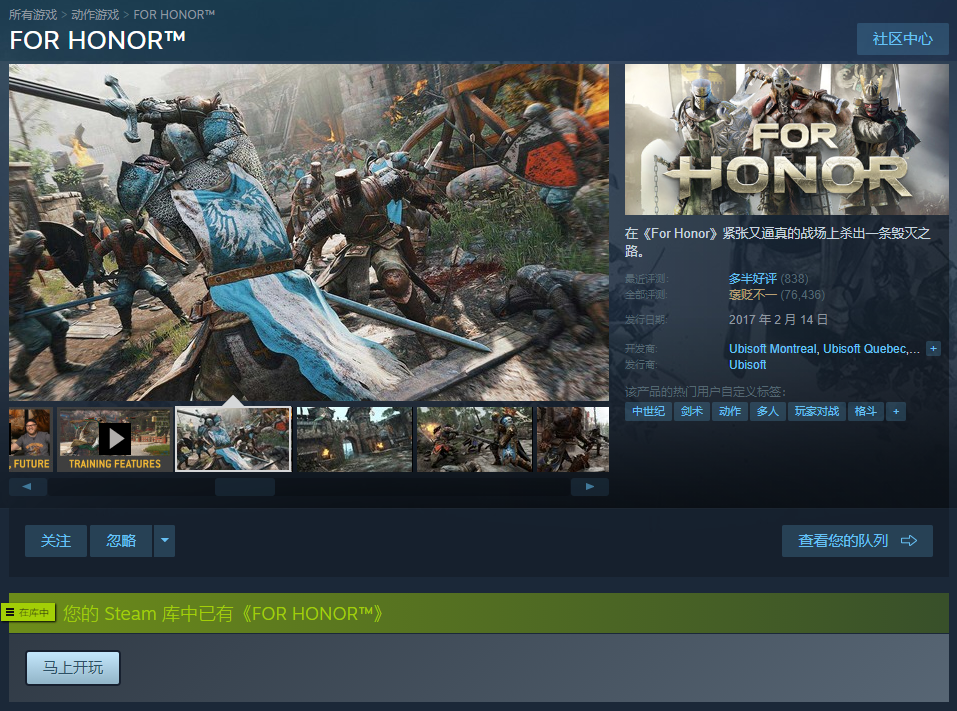 荣耀战魂-FOR HONOR!Steam正版近战格斗游戏!极致体验