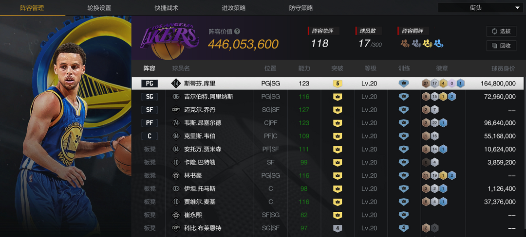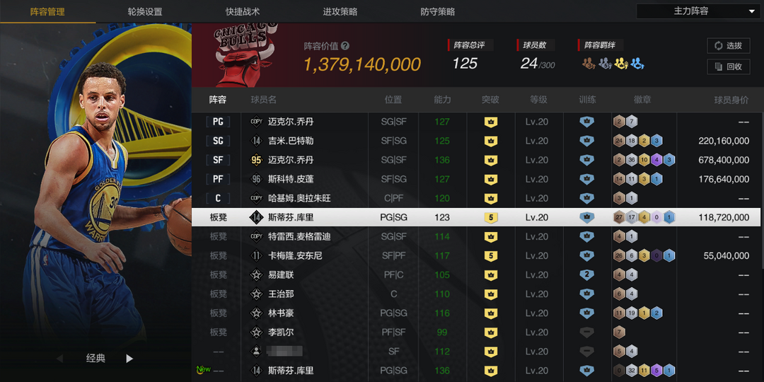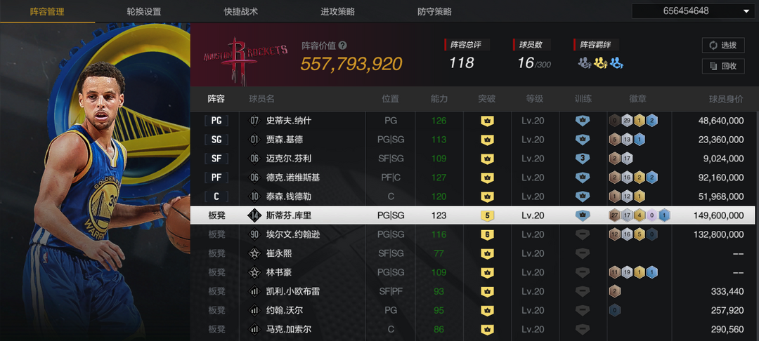 【5陈列室库里】【10时刻司机/纳什】【10钱德勒】【6魔术师】【传奇控卫】【百步穿杨】