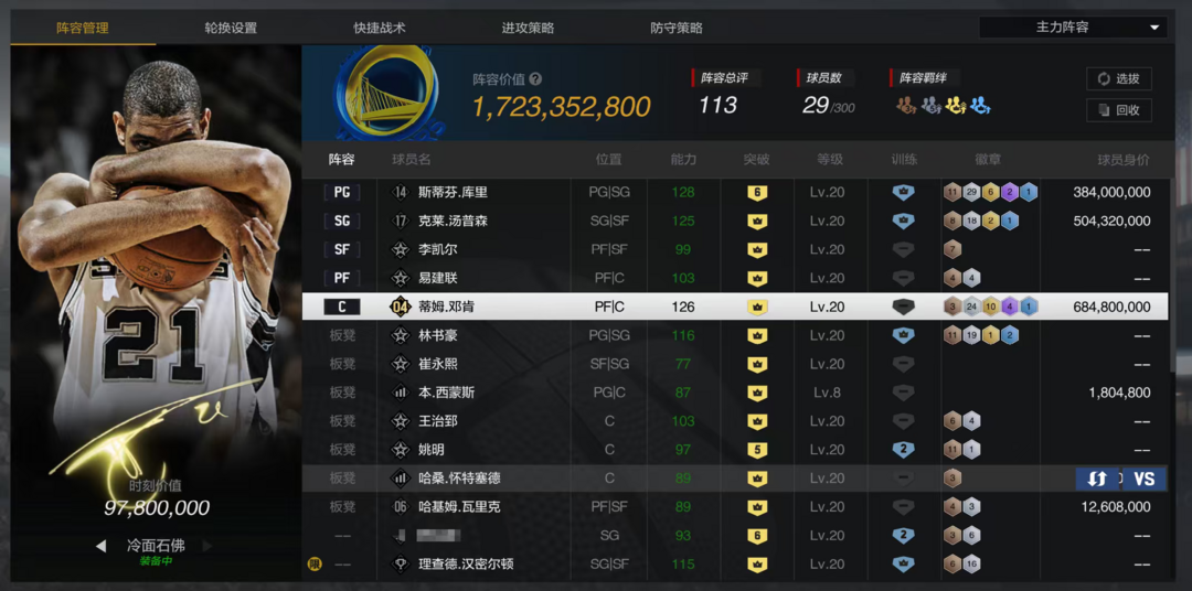 4.37亿阵容丨满突鹰王约什史密斯、满突X5带时刻绝境妖刀马努吉诺比利、满突历史鲍里斯迪奥、6突姚明