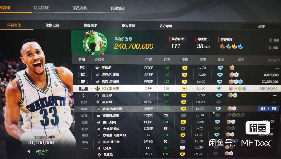9.5亿价值阵容,满突天神詹,6邓肯,可单打可蹲底角,顶级王朝和街头号