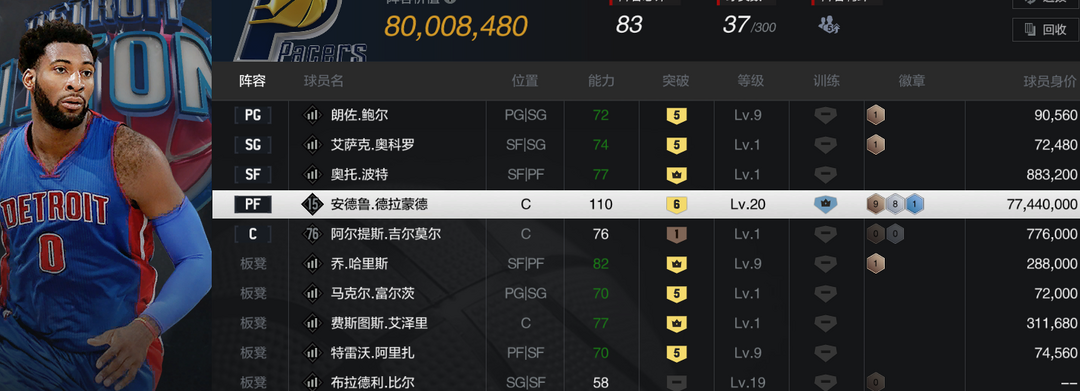 【巅峰活塞套】【10时刻比卢/格里芬/坎宁安/奥尔萨/斯塔克豪斯/大虫/杰登/贾伦】