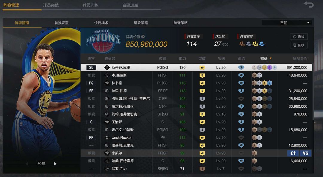 【5.2亿】6突麦迪+满突库里+满突维金斯、班巴、格林等,不能排位,别消极比赛