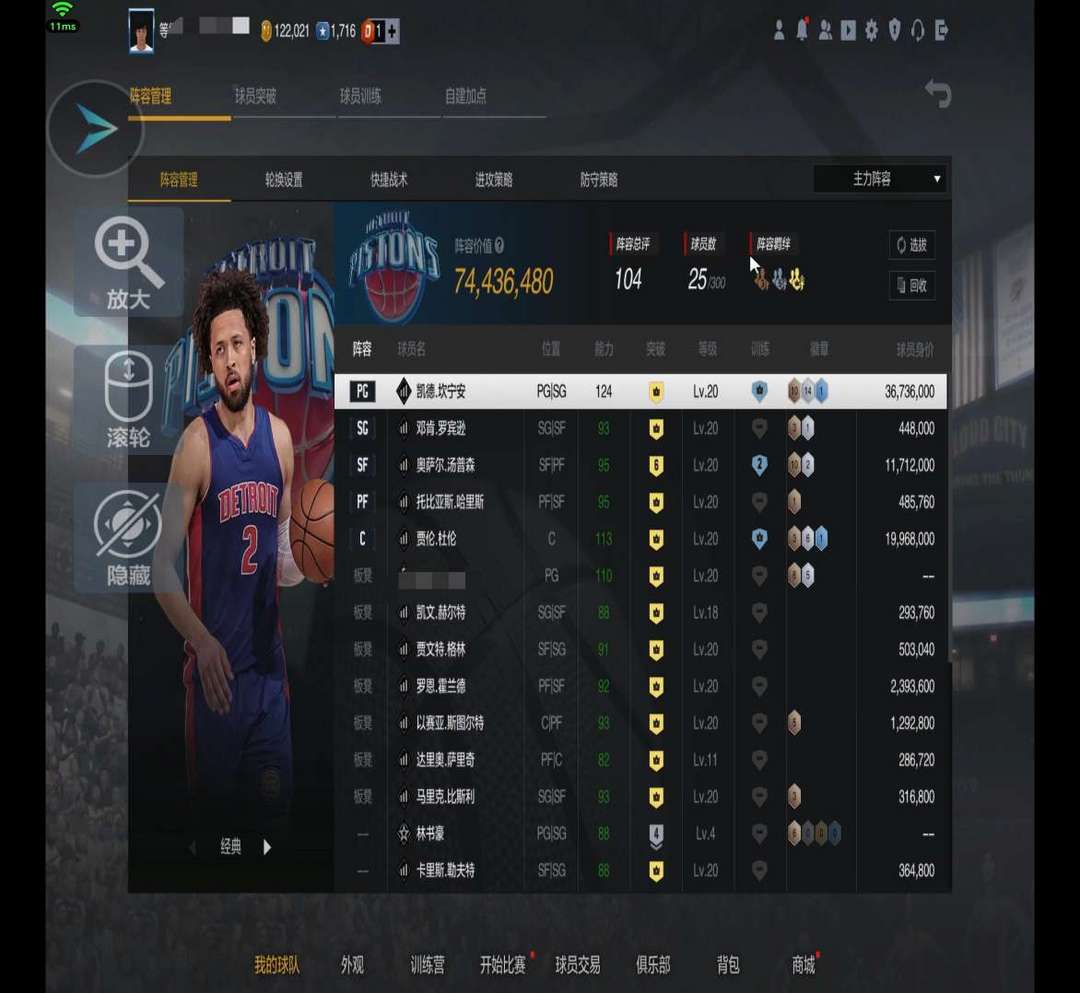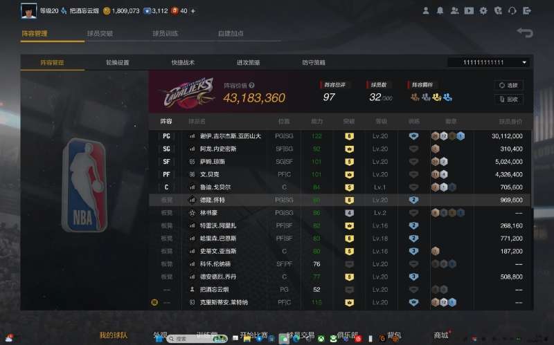球队阵容4000W 球员全是满突 米切尔 武器等等等