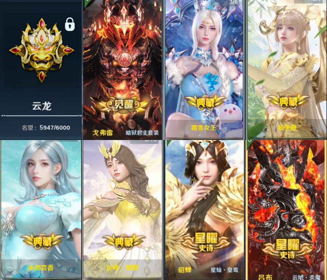 【铁甲雄兵区】5947名望4典藏1觉醒2星耀11传承17兵皮全武将❤飞火登录