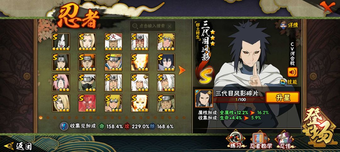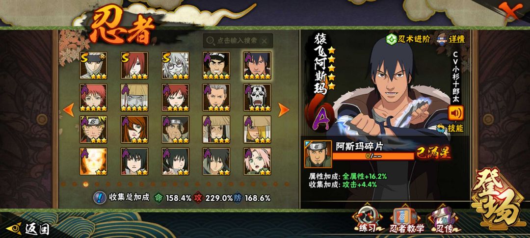 漂泊佩恩✨忍战带土✨43S✨死门凯✨秽土柱间✨秽土斑✨白面具✨秽土水门✨九尾鸣人✨忍战小樱✨无✨金银角✨死三代✨虎皮✨秽土鼬✨半藏✨天道✨须佐佐助✨青年水门等等(详情可看图) 提示●游戏新机制:上号时上个租客还在线会直接显示在别处登陆,重新登录顶掉就行,我是不会恶意顶号的。