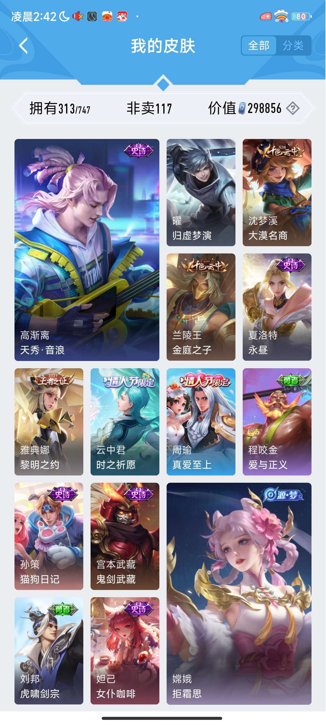 带妹带兄弟上分神器 全英雄,313皮肤,117非卖,倪克斯神谕/天鹅之梦/杀手不太冷/大秦宣太后/琥珀纪元/妄想奇谈/真爱至上/如梦令
