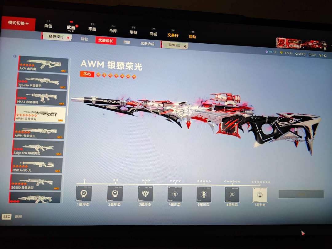 八红皮(MSR老婆枪,AKM老婆枪全部满级)六粉皮(双爪刀长刀),九角色皮肤