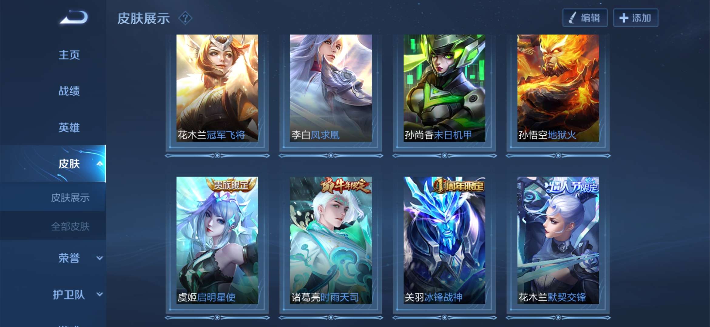 v9.全英雄。全铭文。王者30星。450皮肤。有武则天。另加李白,关羽,铠三典藏。
