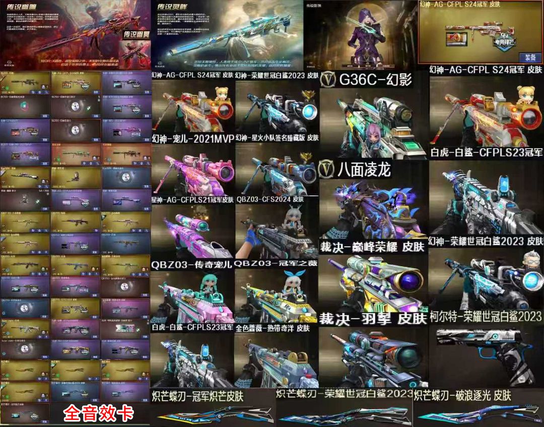 恶意使用外挂,按违规时间律师起诉索赔。 【装备道具】:传说夜影/传说幽瞳/传说灵眸/传说破晓/幻神-星火小队签名臻藏版 皮肤/幻神-AG-CFPL S24冠军 皮肤/幻神-荣耀世冠白鲨2023 皮肤/M200-幻神-N9-2022MVP/幻神-宠儿-2021MVP/幻神-CFS2022/Kar98K-星神-AG-CFPLS21冠军/星神-璀璨皮肤//裁决-流光秘银/裁决-巅峰荣耀 皮肤/裁决-羽掣★白虎-白鲨-CFPLS23冠军/白虎-巅峰荣耀 皮肤/白虎-AG-CFPLS20冠军/QBZ03-CFS2024 皮肤/QBZ03-巅峰荣耀皮肤/QBZ03-冠军之薇/QBZ03-传奇宠儿/雷神-冠军之魄/雷神-宠儿-2019MVP/雷神-传奇N9/雷神-荣耀之魄/炽芒蝶刃-破浪逐光/炽芒蝶刃-荣耀世冠白鲨2023/炽芒蝶刃-冠军炽芒/王者猛虎M4A1/王者星霆/王者破空枪刃/王者凛烈/青龙之魄/传说影煞/电竞教官-云悠悠/_晴雅/隼/华/谜/王者蔷薇QBZ03-天罚/G36C-幻影/VSK-94-金蚀/柯尔特-荣耀世冠白鲨2023(2)/柯尔特-无冕之王(2)/星神-炽天使/枪娘掣电炼狱-